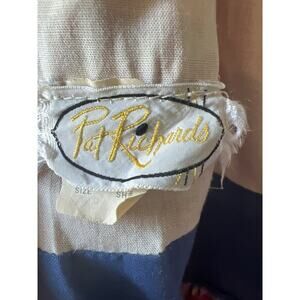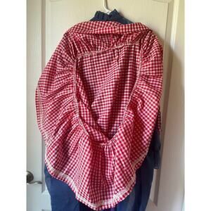 Adorable, hand made, vintage Pat Richards red and white checkered maxi dress with sheer blue overlay. Very patriotic and would be great for the 4th of July. 16” across chest, shoulder to hem is 55”, across waist is 13.25” Juniors 7/8