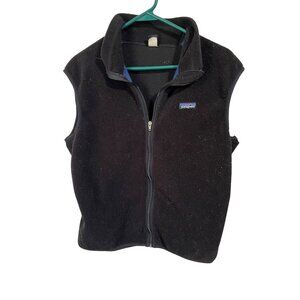 Vintage Patagonia Black Fleece Vest Mens Large With Full Zip & Back Pocket