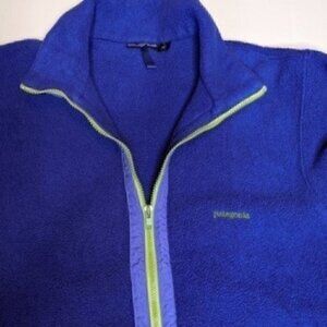 Vtg 80s Patagonia Purple Green 1/2 Zip Fleece Pullover Jacket Large Retro USA Kangaroo Pocket Rare