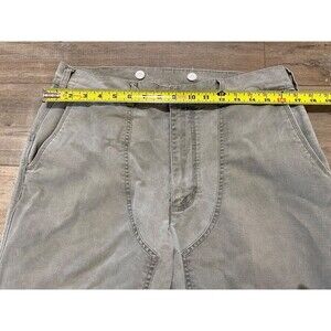 These vintage Patagonia pants are a classic piece of men's clothing in a size 35 waist and 32 inseam. Made from durable canvas cotton fabric, they feature a straight leg with double knee reinforcement for added strength. The beige color and solid pattern give a versatile look suitable for travel, casual wear, or work attire. With a mid-rise fit and cargo pocket design, these khakis offer a comfortable and functional option with a 90s theme that is perfect for all seasons. THIS ITEM IS NO RETURNS. PLEASE LOOK OVER MEASUREMENTS AS PROVIDED FOR EXACT FIT. PANTS SHOW A WAIST OF 35. MEASUREMENTS SHOW A SIZE SLIGHTLY SMALLER. PLEASE COMPARE TO SOMETHING THAT FITS YOU.