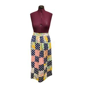 Vintage Patchwork Maxi Boho Sash Tie Polka Dot & Floral Pattern Handmade Apron