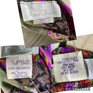 Gorgeous ANNA KRISTE Vintage Blouse with beautiful print in Olive, Purple, Black, Tan