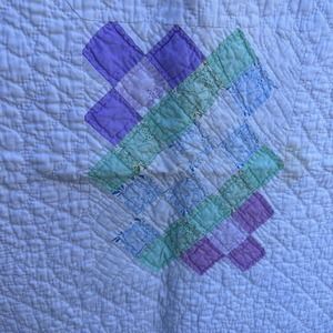 Vintage Patchwork Quilt Postage Stamp Border 78" x 66" Hand Sewn Quilted