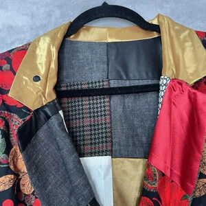 Vintage Patchwork Tapestry Reversible Artsy Boxy Cropped Blazer Jacket Sz L