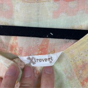 Vintage Patchwork Xtrovert blouse in pale yellow and tangerine. No size but would best fit a small to medium. Please refer to measurements below. Cute fall style with patchwork detailing! Reminds me of free people.