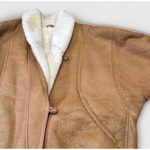 Stay effortlessly warm in this luxurious vintage Patmos shearling coat, crafted from 100% genuine sheepskin in Argentina. With its plush cream shearling lining, natural tan suede exterior, and cozy oversized silhouette, this timeless coat combines rugged durability with classic style. Perfect for cold-weather adventures or adding vintage flair to your winter wardrobe.
