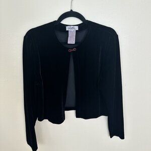 Vintage Patra Black Velvet Cardigan Coverup With Jeweled Clasp Medium Evening 90