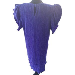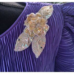 Vintage Patra Purple Pleated Dress With Sequin Floral Brooch Size 14 Womens