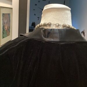 Questions? Leave a comment below! this is a beautiful evening jacket. It’s definitely a vintage. It’s by PATRA absolutely beautifully well-made it’s a velvet. The CUFFS are satin and around the collar of course is satin as well. This is almost like a free size is these are known to be worn over evening gowns go to the opera or just play the dress up so I’m gonna put it down as LARGE as that’s what I wear and it fits with a bit if room to spare and the sleeves like that. This is approximate 24 inches. The length that itself on this gorgeous beautiful piece is an approximate measurement of 36 inches and then the pit to pit line holding it closed so there is room in there as well. He had approximately 21 to 22 inches. I wear a large and this fits me beautifully with room despair. I’m listing this is a large. The details are gorgeous. The satin is beautiful meticulously stored no smoke no pet home. It does have shoulder.pads