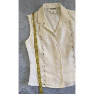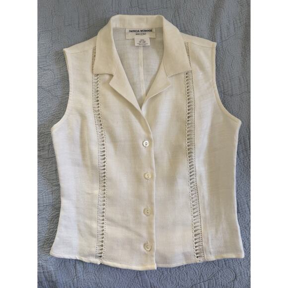 Vintage Patricia Morange White Linen 90s Y2K Cropped Blouse Shirt Sz XS S Italy
