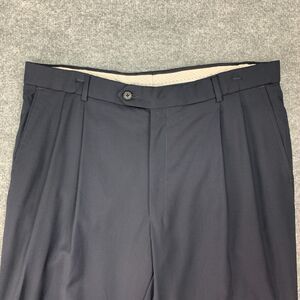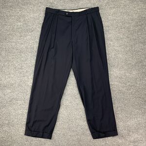 VINTAGE PATRICK JAMES PLEATED DRESS PANTS MENS 34 NAVY BLUE WOOL RELAXED FIT EZE