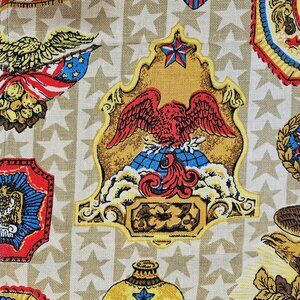 These vintage curtain panels are from the 1970s - the heyday of bicentennial/colonial/Americana decor. They were hand made and feature eagles, liberty bells, stars, and more. Fabric is cotton or possibly linen blend.