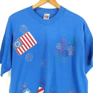 Vintage Patriotic T-Shirt Adult's XXL Blue Fruit Of The Loom Distressed USA