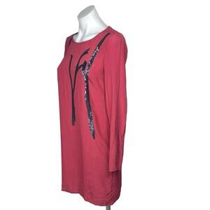 Vintage Patrizia Pepe Vintage Style Pink Silk Acrylic Sequin Embellished Keyhole Back Round Neck Pullover Long Sleeve Shift Mini Dress Size S