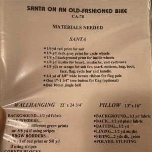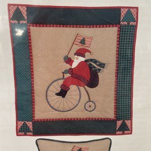 Vintage Pattern Santa on an Old Fashioned Bike Wallhanging and/or Pillow - NEW