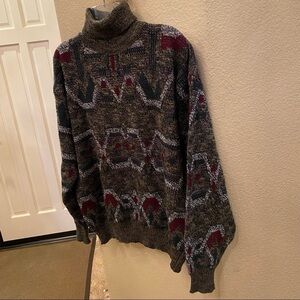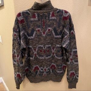 Vintage Patterned Turtleneck Wool Blend Sweater Size Large-Made in Italy
