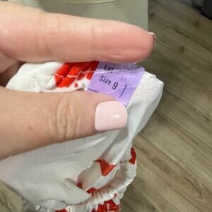 Top is a button down style with elastic at the waistline and adjustable ruching at the shoulders-measures 15" across the chest, 20" from shoulder to hem
