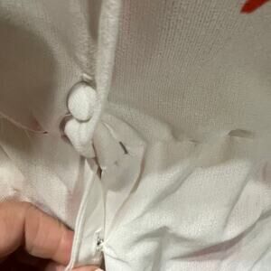 The top has the eye missing from the hook and eye closure at the waist, it is currently being closed with a safety pin-easy to replace