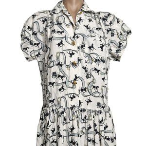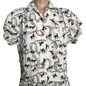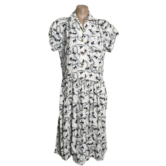 Vintage Patty Woodward Equestrian Horse Print Midi Dress Size Large