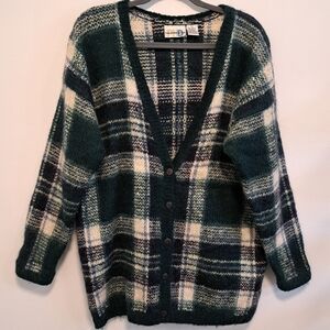 Vintage Paul Harris Cardigan Plaid Mohair Blend Grunge Grandpa Boho Women's Sz L
