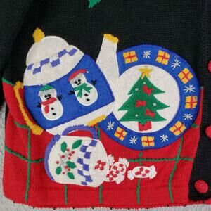 Vintage Paul Harris Cardigan Women's Medium Knit Christmas Black Sweater