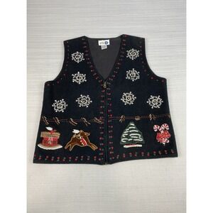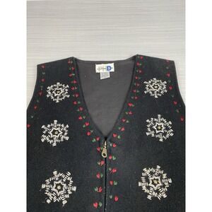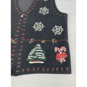 Vintage Paul Harris Design Christmas Vest Women M Black Wool Blend Holiday