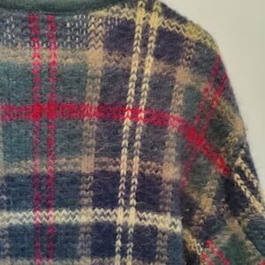 Vintage Paul Harris Designs Sz L Mohair Blend Green Plaid Oversized Sweater