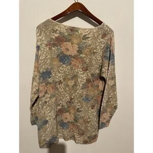 Vintage Paul Harris Pink Cottagecore Floral knit chunky sz L long sleeve scoop