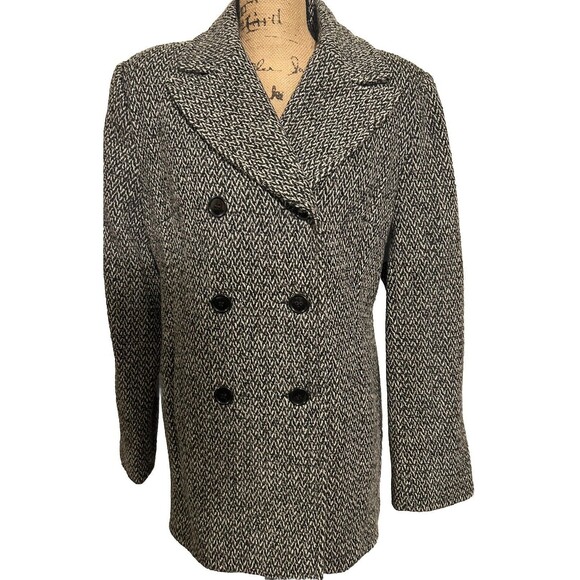 Vintage Paul Levy Trench Coat Womens Gray Wool Herringbone Jacket Size 10. Good pre-owned condition- see photos for measurements