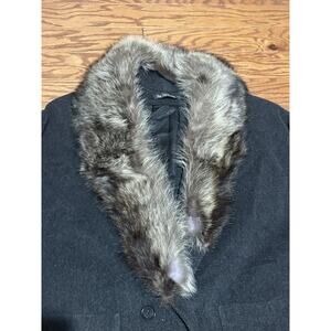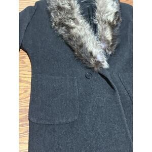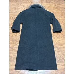 Vintage Paul Levy Women's Gray Wool Long Trench Coat w/ Faux Fur Collar, Size L