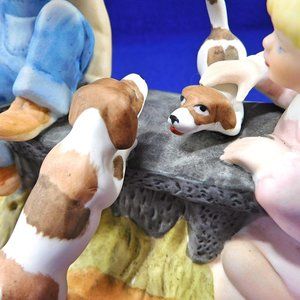 Vintage Paul Sebastian Figurine Boy and Girl With Dogs Bisque Porcelain 1991