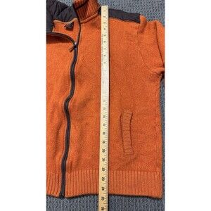 This is a pre-owned, men's vintage Paul & Shark zip sweater in good condition. Crafted from 100 % Italian wool. Features a vibrant orange knit, Paul & Shark emblem, and distinctive quilted brown patches on the shoulders and elbows. Please note the sizing discrepancy common in vintage apparel. Tagged size is 3XL which is approx. equivalent to a modern 2XL/XL. Please refer to the photos for size measurements.