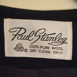 Vintage Paul Stanley Black Pure Wool 90s Collarless Long Lines Blazer, Size 6. Pit to pit 20", shoulder to hem 32", Ubiquitous Open Front Style, Rounded Seamless Shoulders, Patch Pockets, Fully Lined, High Quality. Good Pre-Owned Condition