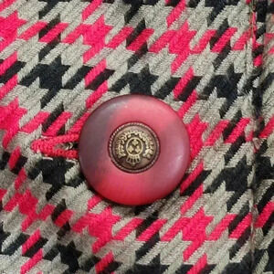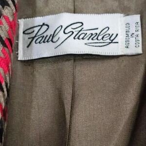 New with tags! Beautiful vintage late-80s/early-90s Paul Stanley houndstooth plaid blazer in a bold red and black pattern. Tailored single-button silhouette with light structure through the shoulders and a long, flattering hip length. Perfect for business wear, office styling, or retro fashion lovers.