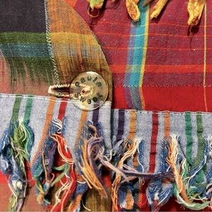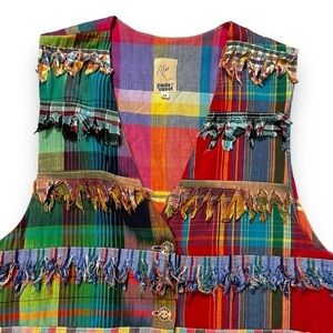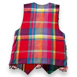 Vintage Paula Sweet Fringed Muslin Vest Art to wear Mixed Plaid Print Medium