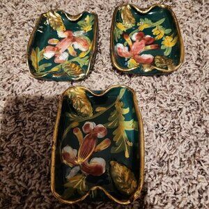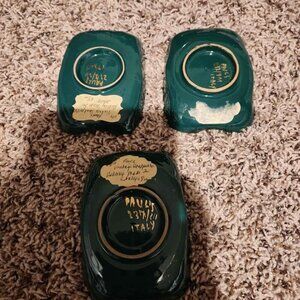 Three vintage Paul's Dime Store hand-painted ashtrays from Italy. In good condition. Please see photos for details. Sold in as-is vintage condition. Stickers on the back with handwritten descriptions. These can also be used for jewelry or trinkets. #vintage #ashtray #trinkettray #paulsdime