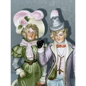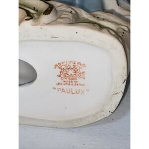 This vintage Paulux Moriyama figurine couple is a beautifully hand-painted bisque porcelain piece from Occupied Japan in the 1940s-1950s. The medium-sized figurine features a multicolor design and depicts a colonial style couple, making it a unique and collectible addition to any decor collection. With its originality and retro charm, this rare piece captures the essence of a bygone era and is sure to be a conversation starter in any home.