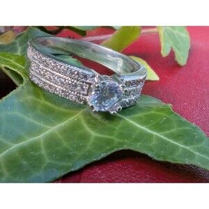 Gorgeou simulated diamond solitaire flanked by 3 rows of pavé simulated diamonds on each side