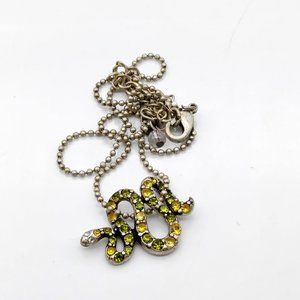 Vintage Pave Crystal Coiled Snake Pendant Necklace, Yellow and Green on Silver Tone Ball Chain