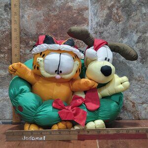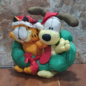 Vintage Paws Garfield And Odie Christmas Nylon Wreath Plush Stuffed Toy