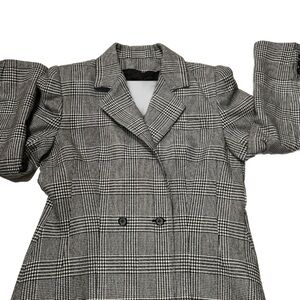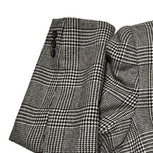 This is a vintage Peabody House 2 piece skirt suit in black and white tweed. Preowned in excellent condition. Features side zipper and button with front pleats and pockets. The set includes a skirt with back split and jacket made of wool blend materials. The jacket has a notch lapel style and the suit is from the 80s era. The size is 13/14 for regular women's sizing.