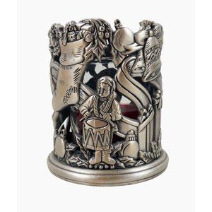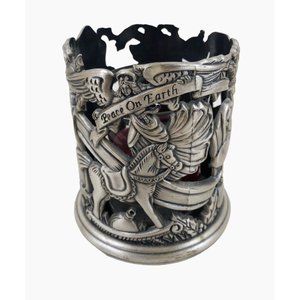 Vintage Peace On Earth Candle Votive Holder Pewter Christmas Holiday Santa