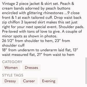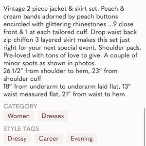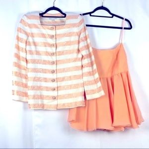 Vintage Peach 2-Piece SET sz XS/S Formal prom wedding VictorCosta VTG rhinestone