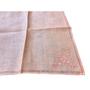 Beautiful 1930s set of peach embroidered tablecloth and 3 matching napkins.