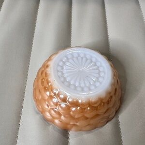 Add a touch of vintage class to your home with this beautiful peach decorative bowl. Its unique design and warm color make it a perfect centerpiece for any room.