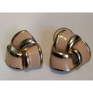 Vintage Peach Enamel Earrings Triangle Shaped Peach and Gold
