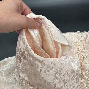 Vintage Peach Floral Dress 80s Nilani Korea Sz 8 Lace Shoulder Pads Drop Waist