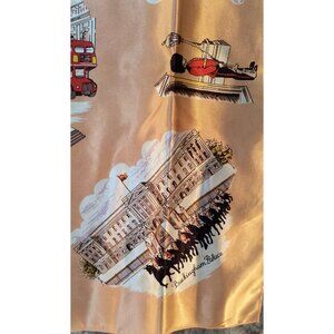This elegant peach scarf showcases the timeless allure of London with intricate illustrations of famous landmarks such as Buckingham Palace and Piccadilly Circus. The vintage-inspired design captures the essence of classic British style. Its luxurious fabric offers a soft, smooth touch, making it a cherished accessory for any wardrobe.