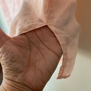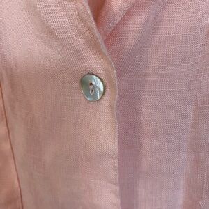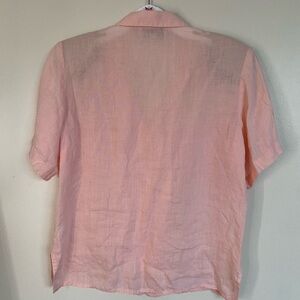 Elevate your wardrobe with this stylish vintage 100% linen peach pink button-up top. Perfect for any occasion, this top offers both comfort and elegance.