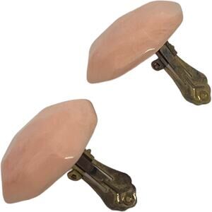 These charming 80s clip-on earrings are a perfect statement piece for any vintage jewelry lover. Featuring a soft, peachy pink hue, these earrings evoke a retro style that captures the elegance and flair of the 1980s. The earrings are in good condition, showcasing minimal signs of wear, and their clip-on design ensures a secure fit for those without pierced ears.